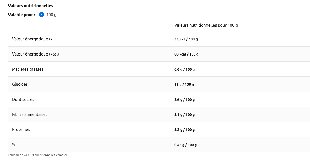 Petits pois extra-fins, eau, sucre, sel.