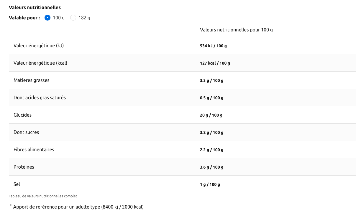 1 boite de garniture : tomates fraîches* 42%, eau, oignons frais* 6%, huile d'olive vierge extra* 3,4%, poivrons rouges*, concentré de tomates*, sel, persil*, jus de citron concentré*, menthe déshydratée*, arôme naturel de menthe, poivre blanc moulu*. 1 sachet de semoule de BLE* dur précuite 24,7%. *Biologique. Pourcentages exprimés sur le produit total.